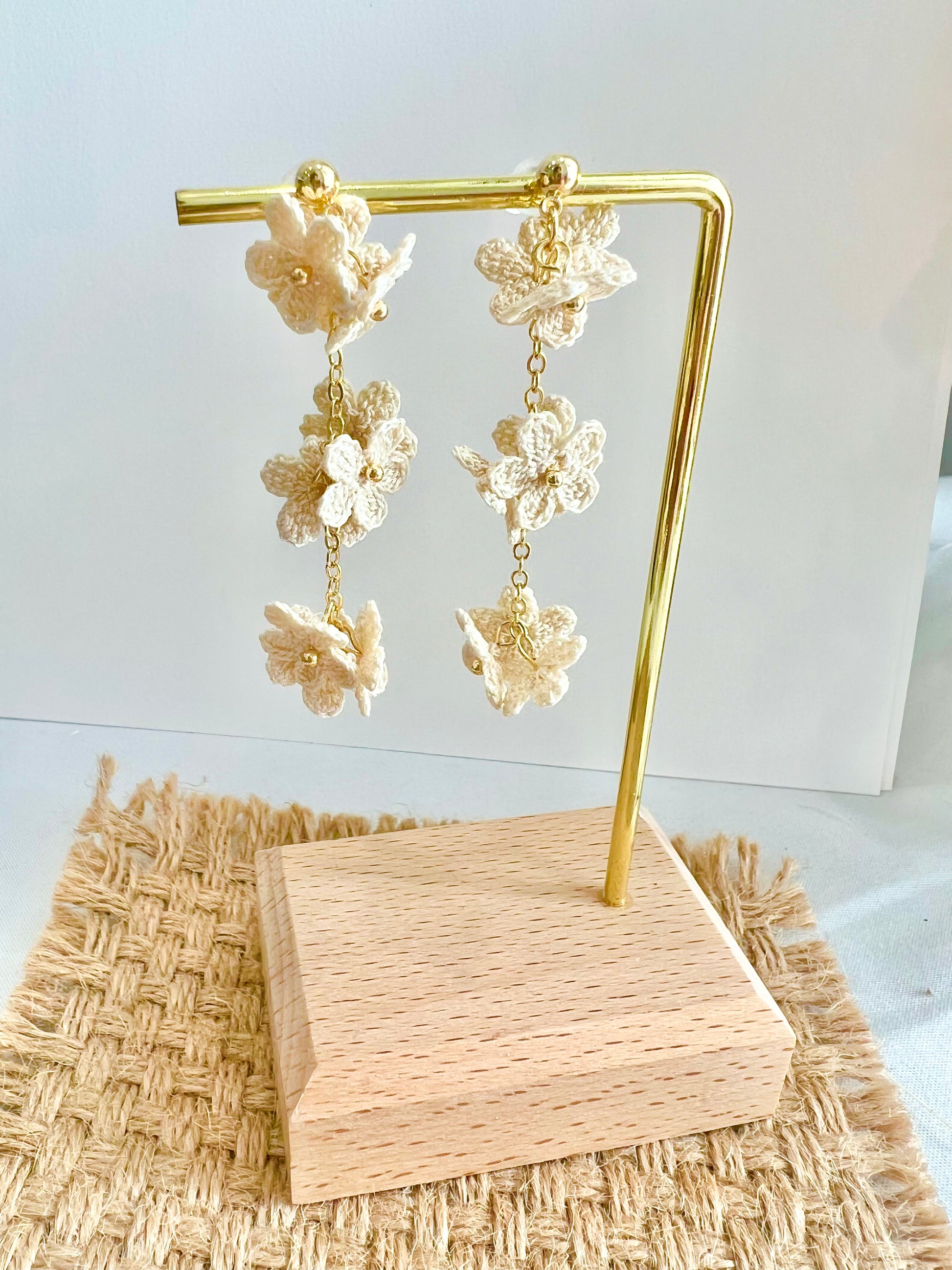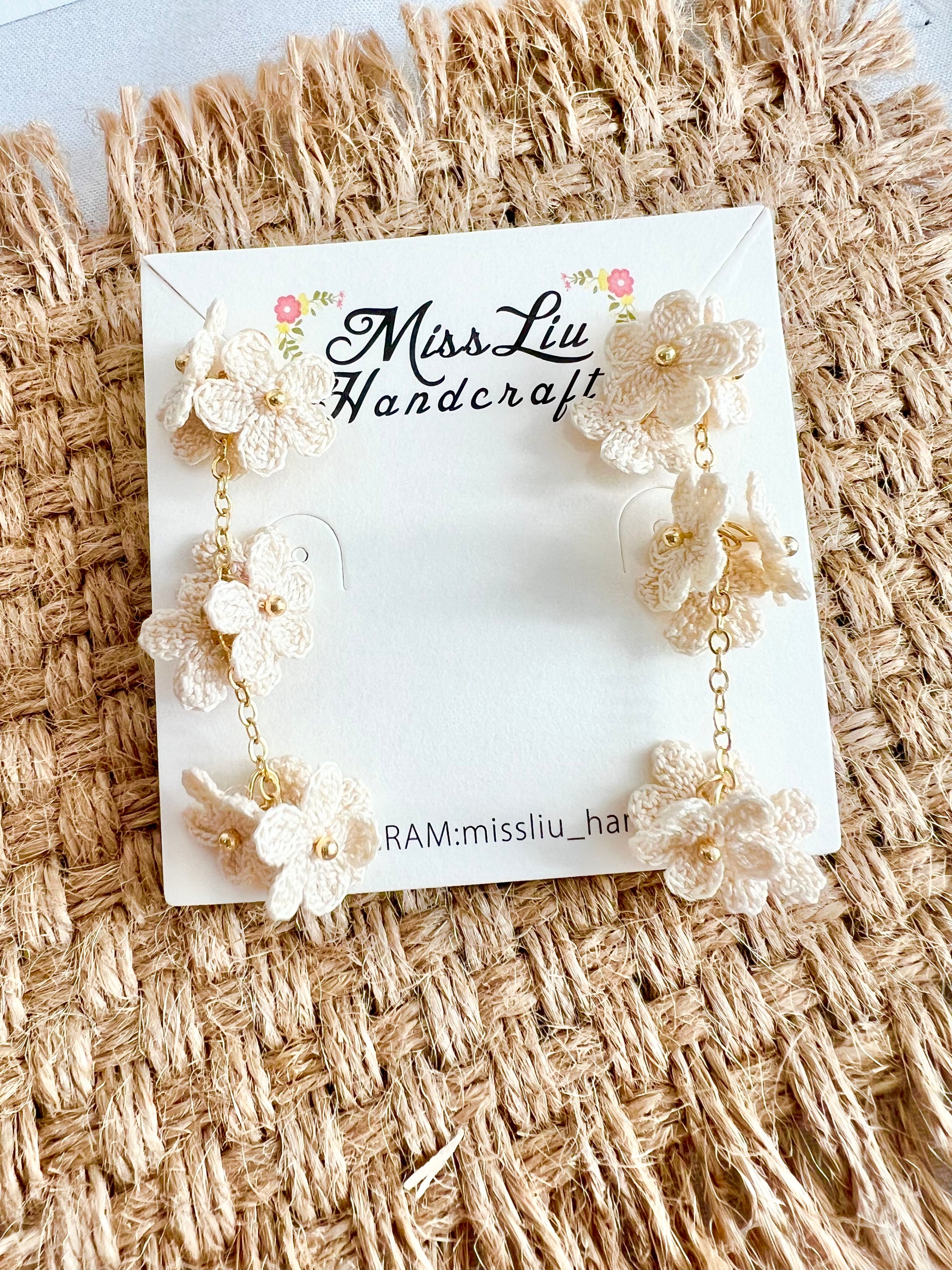 It is a special and exquisite handmade multiple flowers dangling earring that made it from micro-crochet craftmanship.